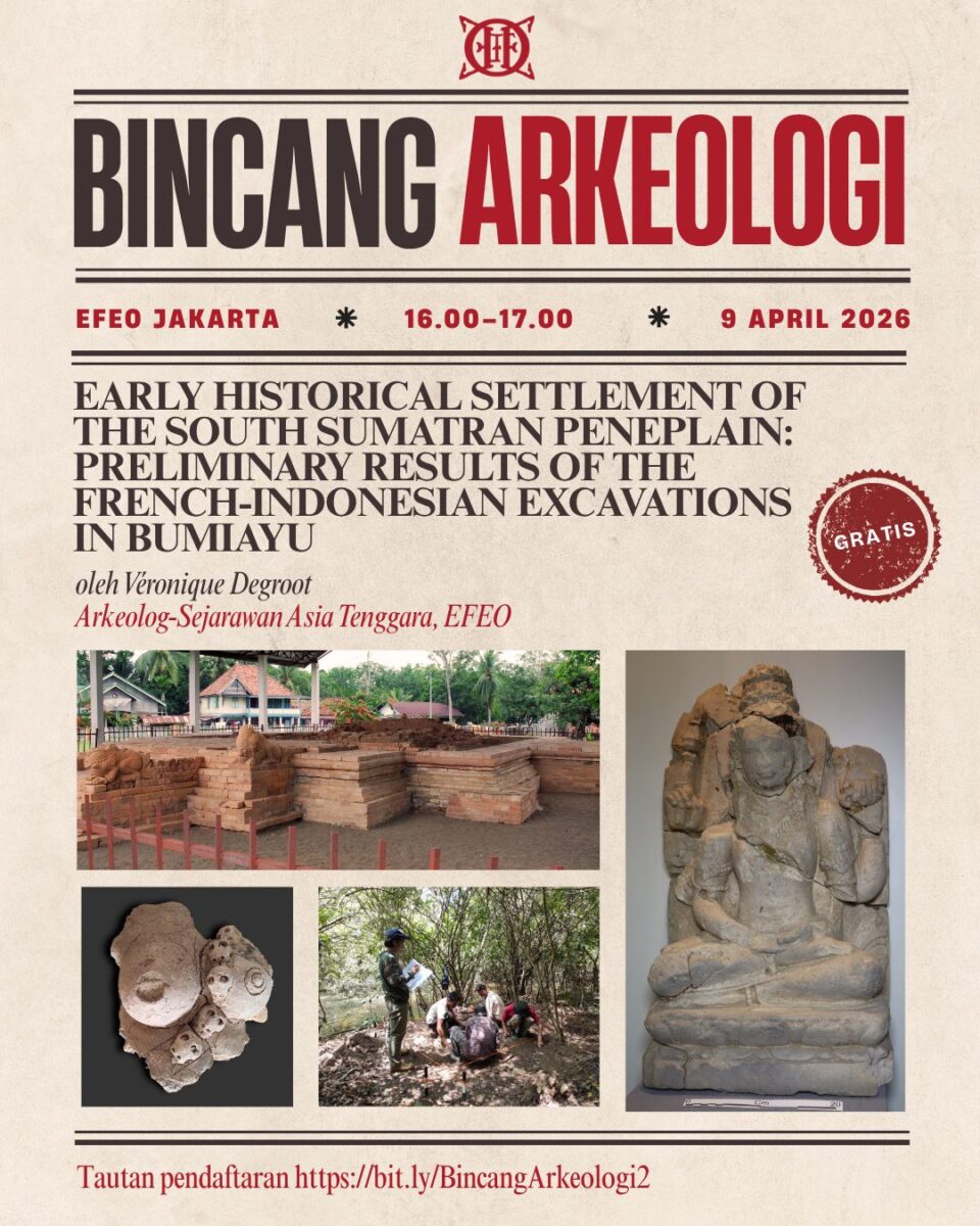 Véronique Degroot donne une conférence intitulée « Early Historical Settlement of the South Sumatran Peneplain: preliminary results of the French-Indonesian Excavations in Bumiayu » dans le cadre de la série de conférences « Bincang Arkeologi ».