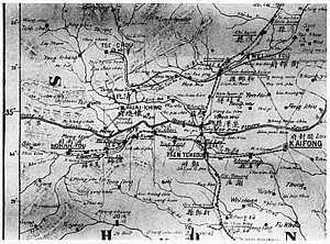 chinois. Le chantier de Zhengzhou à Luoyang s'avéra particulièrement intéressant du point de vue archéologique (époques Han, Song ), en particulier les 60 derniers kilomètres entre Gong xian et Luoyang. D'éminents archéologues comme Edouard Chavannes (en 1907) et Henri d'Ollone (en 1908) visitèrent les sites dégagés lors des travaux d'établissement de la voie ferrée. C'est en juin 1909 que les 120 nouveaux kilomètres de Zhengzhou à Henan fu furent ouverts à l'exploitation. Avec les 65 kilomètres déjà en service depuis Kaifeng fu, c'était une ligne de 185 kilomètres qui parcourait le Henan d'est en ouest. Elle avait coûté 41 millions de francs or, soit en moyenne 220 000 francs par kilomètre. Aujourd'hui, la ligne Kaifeng - Luoyang, complétée, mène de la mer de Chine aux confins du Kazakhstan, soit plusieurs milliers de kilomètres. |
