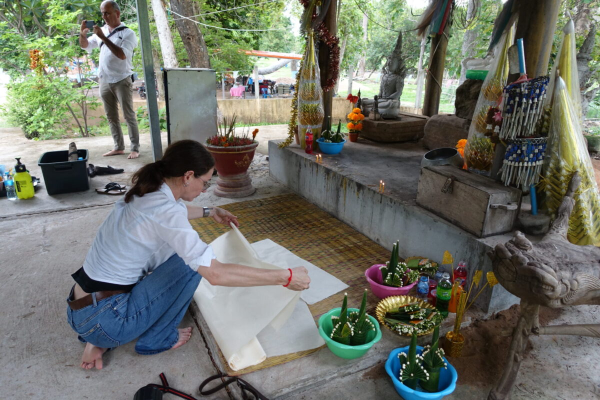 Ses recherches, basées sur l’étude d’archives scientifiques et administratives, tirent également partie de travaux réalisés dans le cadre de plusieurs projets. Elle a ainsi travaillé sur la documentation de l’atelier de restauration de sculptures du Musée national du CambodgeEFEO de 2014 à 2018, puis comme commissaire, en collaboration avec Damian Evans, pour la conception de l’exposition temporaire itinérante « Angkor – The Lost Empire of Cambodia », en tournée depuis 2020 en Amérique du Nord. En 2024-2025, elle est intervenue dans le projet IndexAngkor (CollEx-Persée-EFEO) pour la mise en valeur du corpus numérique des archives de la Conservation d’Angkor. Elle assure actuellement la coordination scientifique de la conception de l’exposition du musée de Savannakhet (RDP Laos) en collaboration avec Bertrand Porte, dans le cadre du projet CHAMPA (AFD-EFEO, coordonné par Christophe Pottier).
