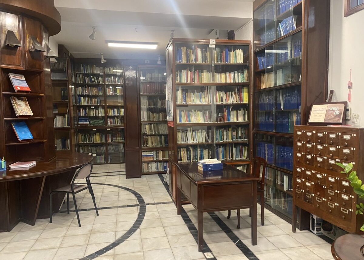La bibliothèque du centre de Hanoï n’est pas héritière de l’ancienne bibliothèque de l’EFEO, devenue vietnamienne en 1954. La nouvelle bibliothèque, établie en 1995 au centre, soit dès la réinstallation de l’EFEO au Vietnam, conserve plus de 10 000 volumes en langues française, vietnamienne et anglaise. Ses collections portent principalement sur les domaines de recherche suivants : l’histoire, l’anthropologie et les sciences humaines du Vietnam et des pays environnants (Cambodge, Chine, Laos, Thaïlande). La bibliothèque attache beaucoup d’importance à l’accroissement des échanges avec les universités et les centres de recherche au Vietnam, en France et à l’étranger. L’acquisition en 2005 de la bibliothèque personnelle du professeur David Marr, puis le don de celle de l’historien économique Đặng Phong ont considérablement enrichi le fonds documentaire du centre, qui comporte en outre une assez large collection de périodiques spécialisés.