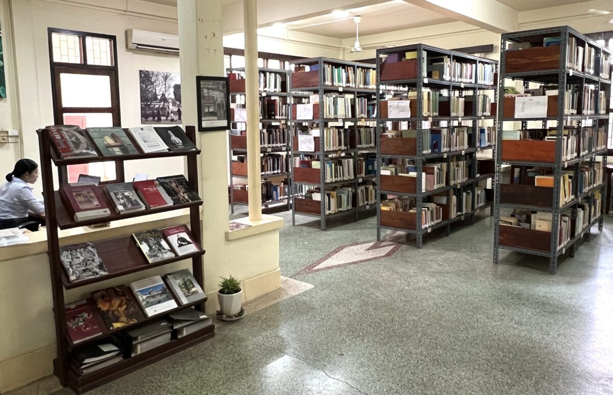 Ouverte en 2005, la bibliothèque dispose d’un fonds multilingue en sciences humaines et sociales ainsi que d’une collection unique sur le Laos, régulièrement mise à jour. Les principales disciplines couvertes sont l’ethnologie, l’histoire, l’histoire de l’art, l’archéologie, la linguistique et les religions (en particulier le bouddhisme). La bibliothèque offre au public l’accès à l’ensemble de ses ressources documentaires comprenant près de 5 000 monographies et revues ainsi que des centaines de tirés à part.